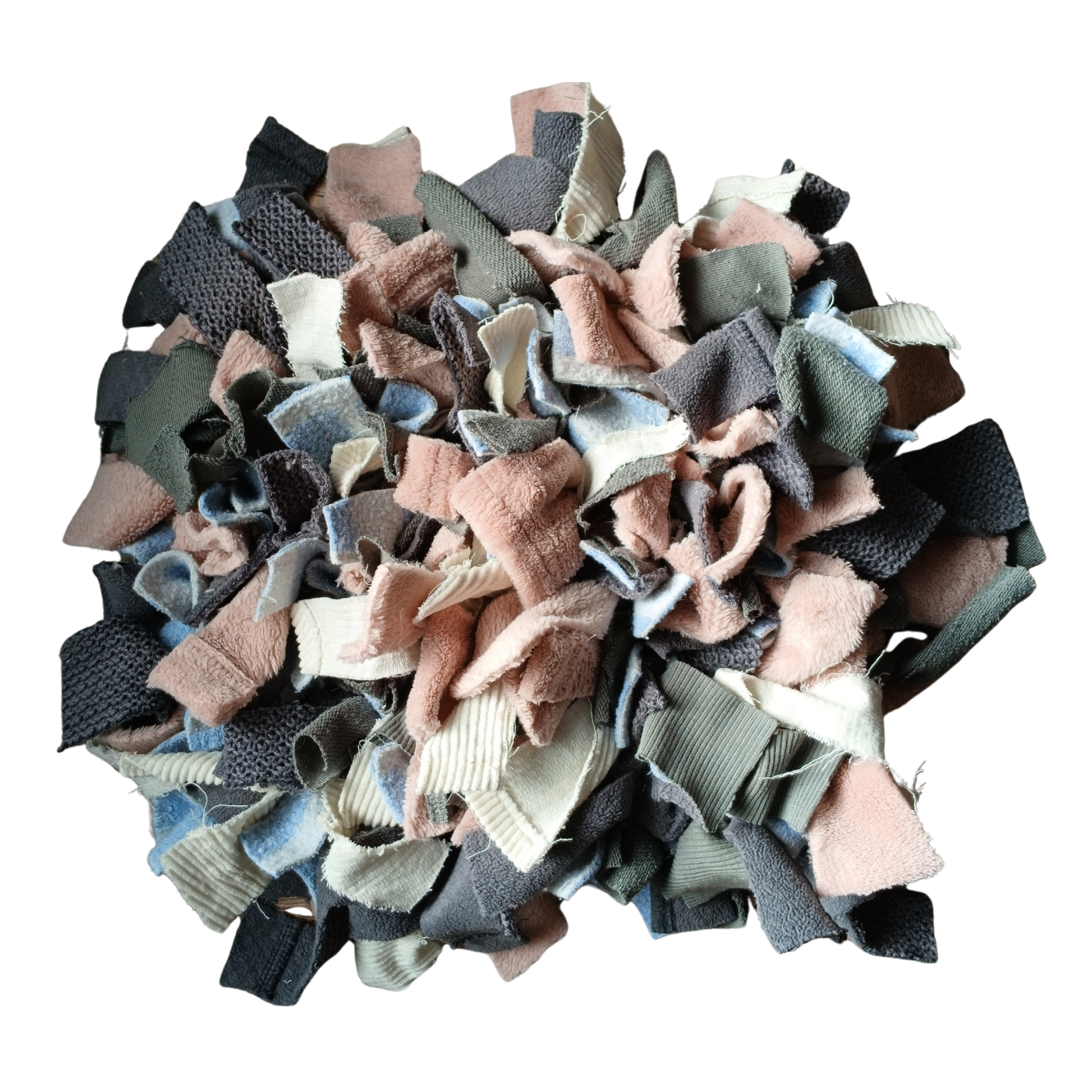 Unser Eco Chaos ist kein gewöhnlicher Schnüffelteppich, sondern ein echtes Recycling-Wunder. Jeder Teppich wird aus alten Stoffen, Kleidung oder Stoffresten gefertigt – und ist damit ein Unikat, das nicht nur deinem Hund Freude macht, sondern auch der Umwelt guttut.